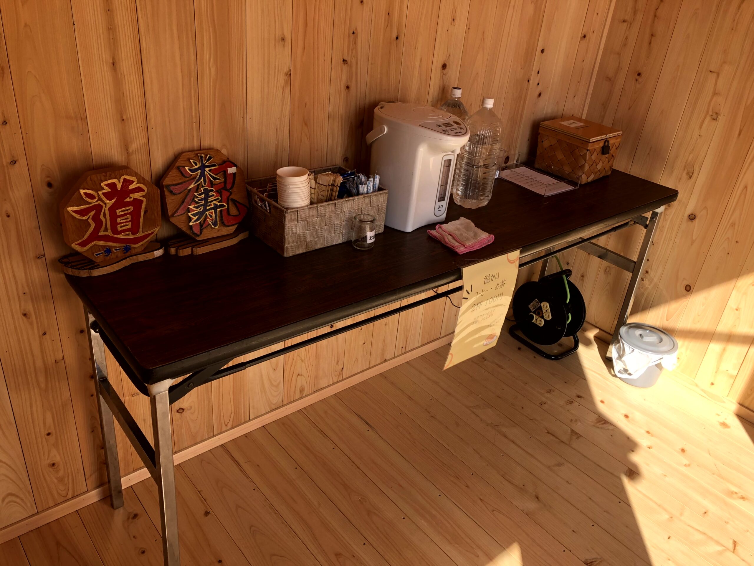 休憩所にはベンチとブースを設置していて、ホットコーヒー・お茶(冬季)・アイス(夏季)などの販売もしています。