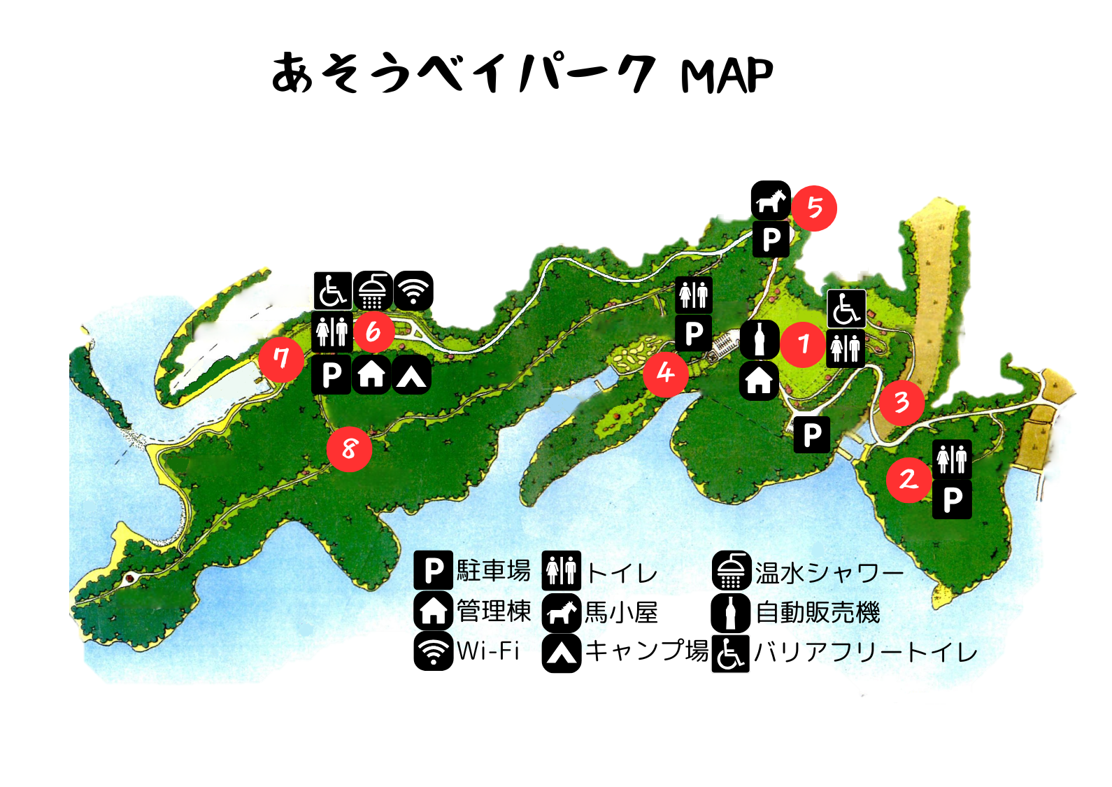 総合管理棟があり、キャンプ等の受付やキャンプ道具の販売、グラウンドゴルフセットの貸出など様々なお問い合わせに対応いたします。